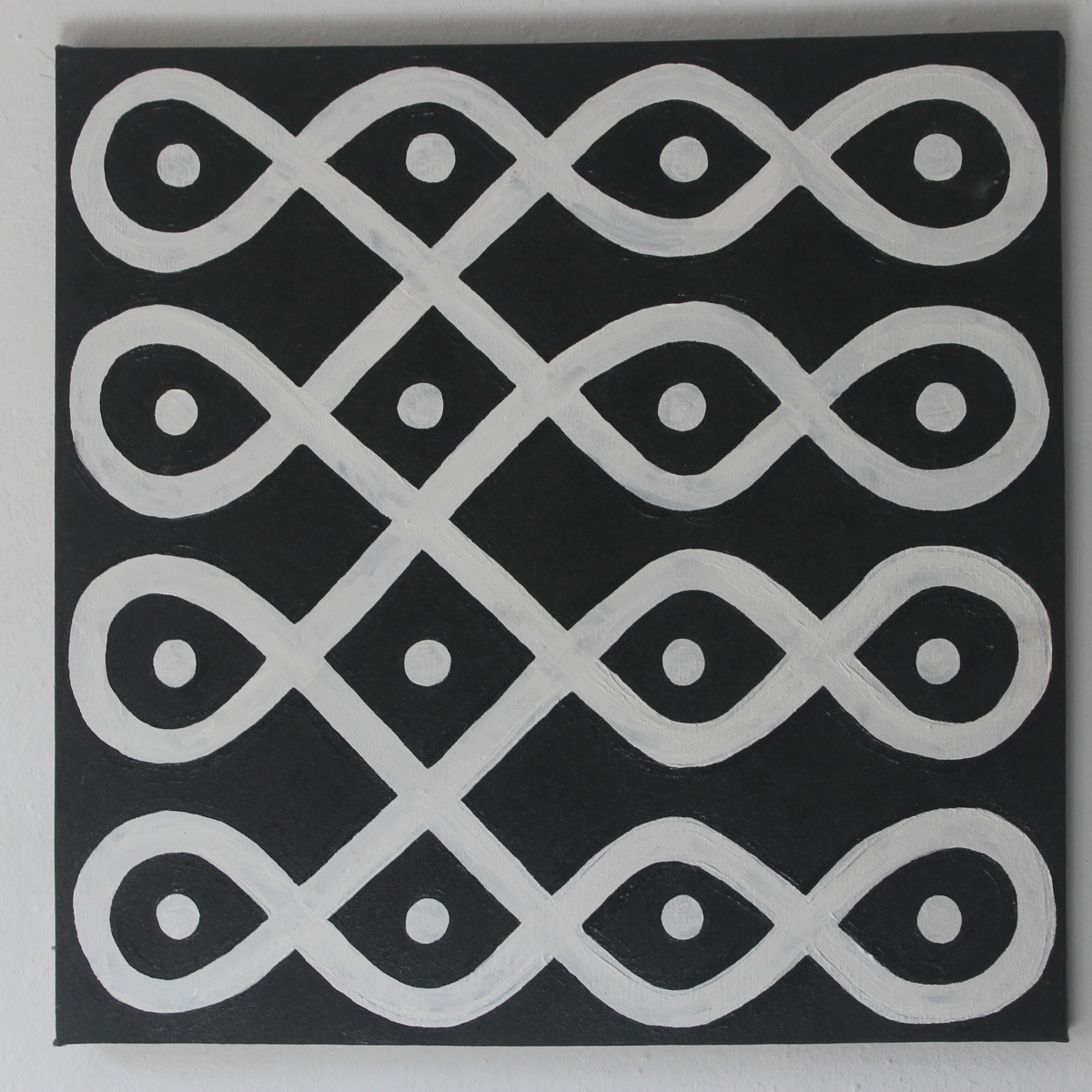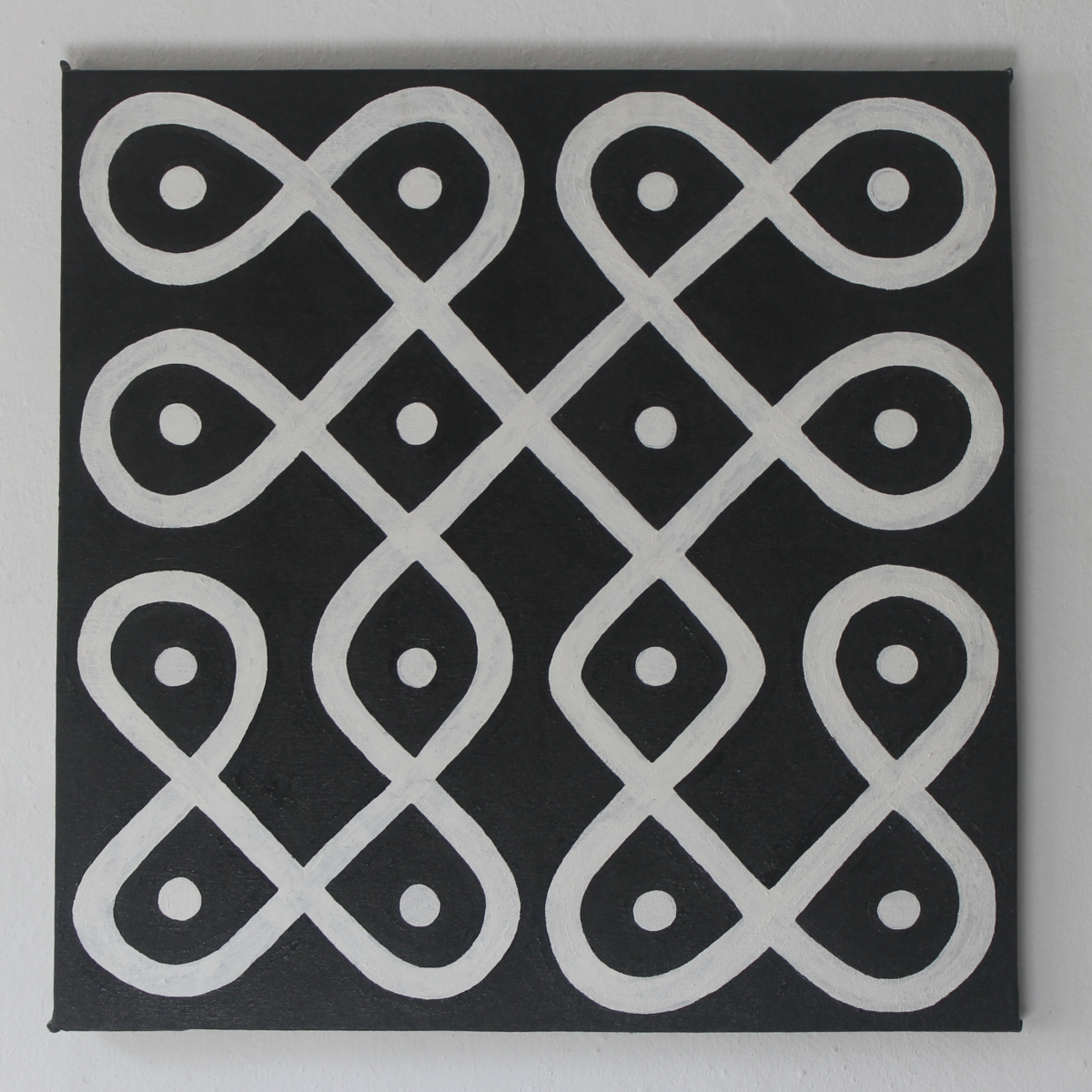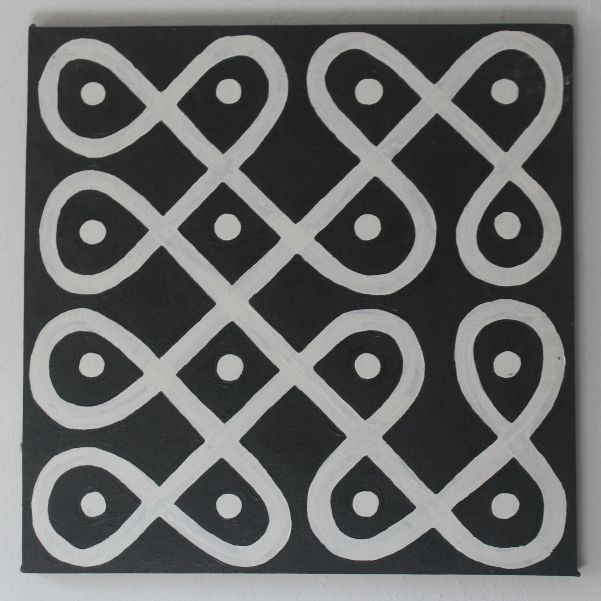Through the specific practice of Sikku Kolam I developed the Satura Kolam where Satura means ‘Square’ in Tamil. The reason why I used the Tamil equivalent of the word ‘Square’ is that in the Satura Kolam, the smallest space which is possible to create is a square.